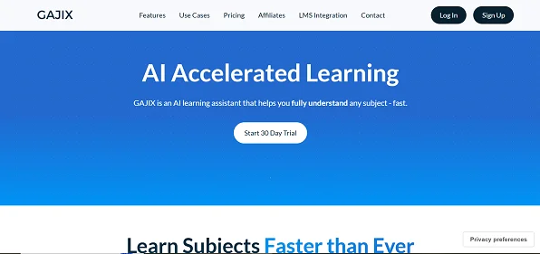GAJIX is an innovative AI learning assistant designed to revolutionize how you acquire knowledge. By generating personalized syllabi tailored to your learning goals, it ensures comprehensive coverage of any subject, from Computer Science to Marketing. GAJIX’s advanced AI models break down complex topics into easily digestible insights, enhancing your understanding and retention.